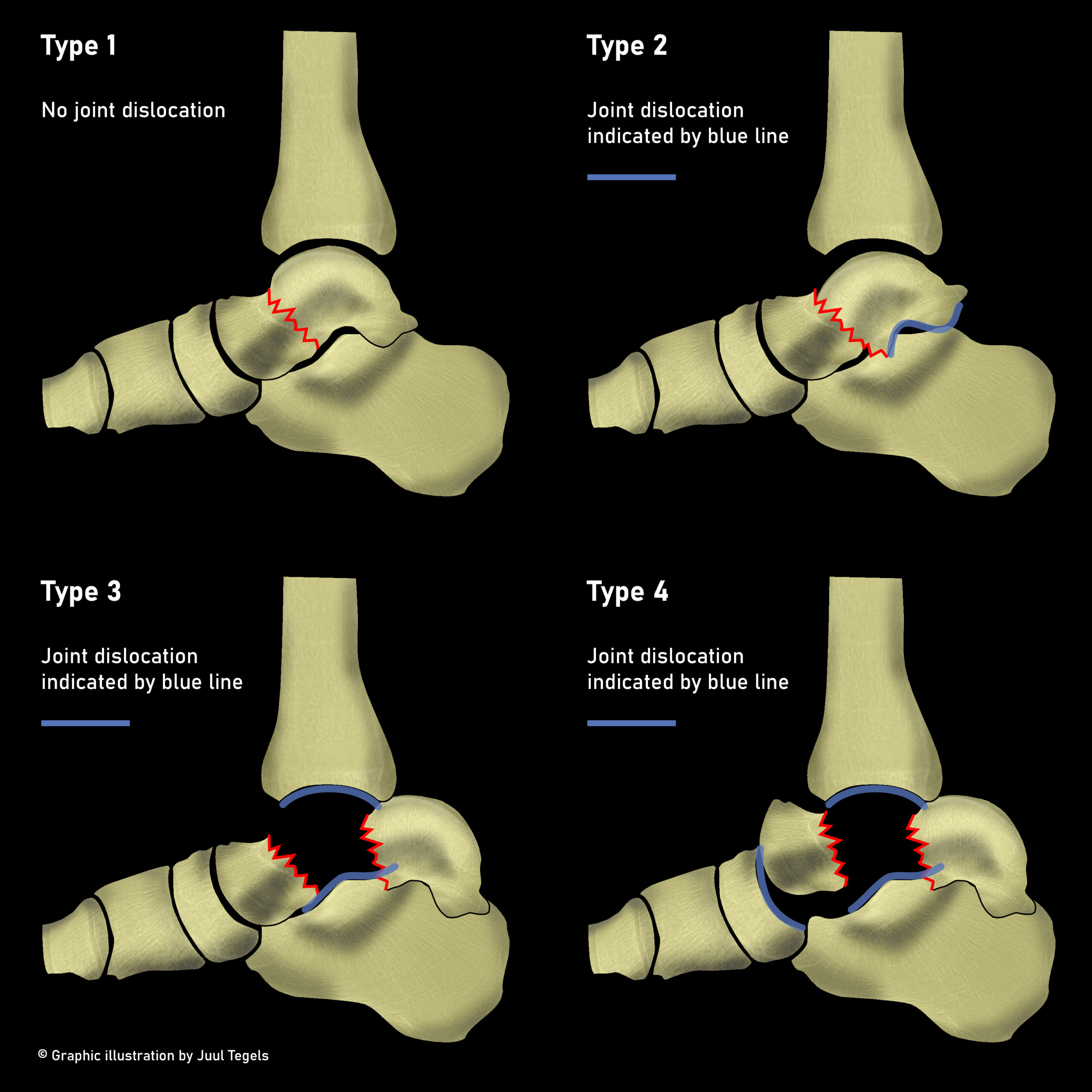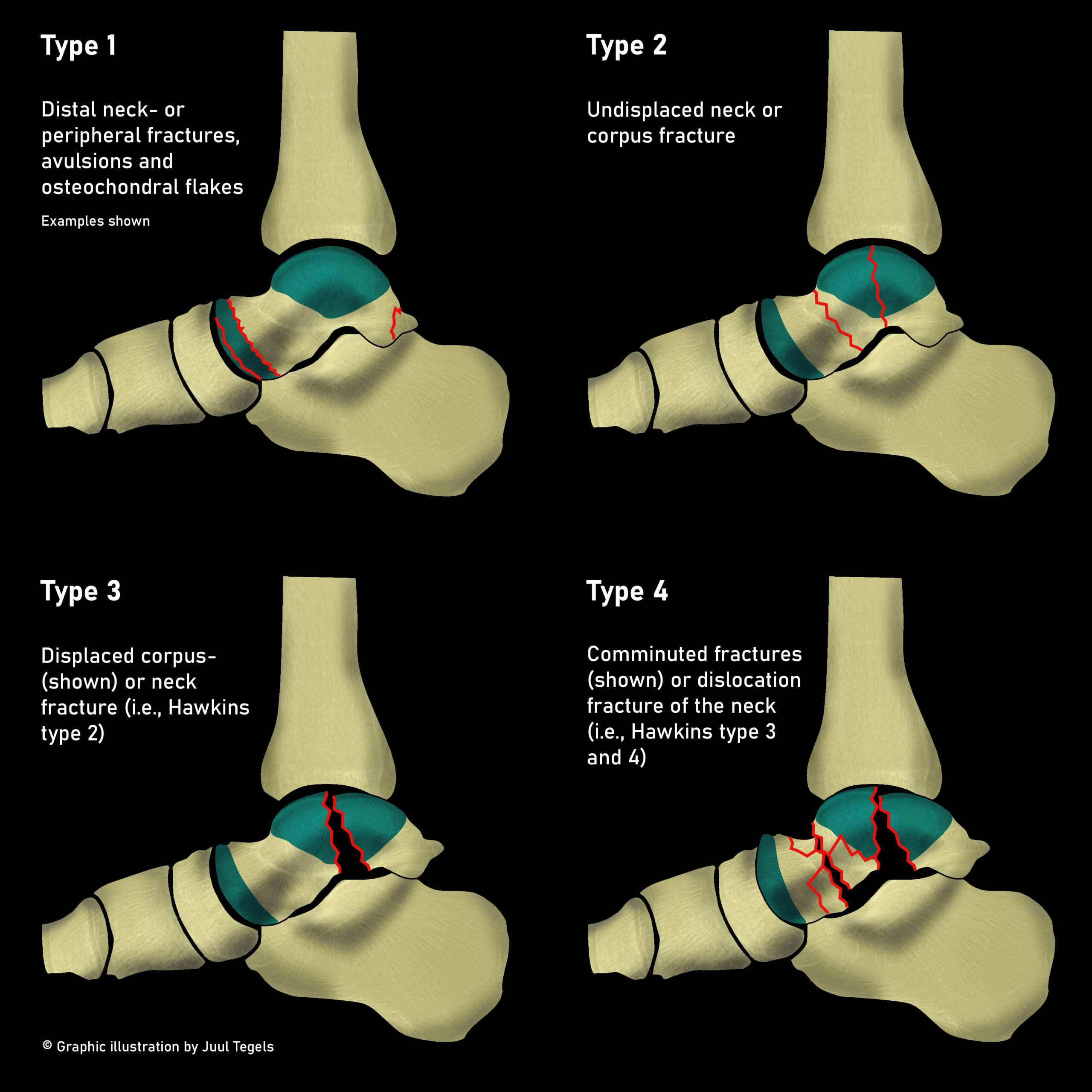 Er zijn meerdere typen talus fracturen te onderscheiden, deze zijn: